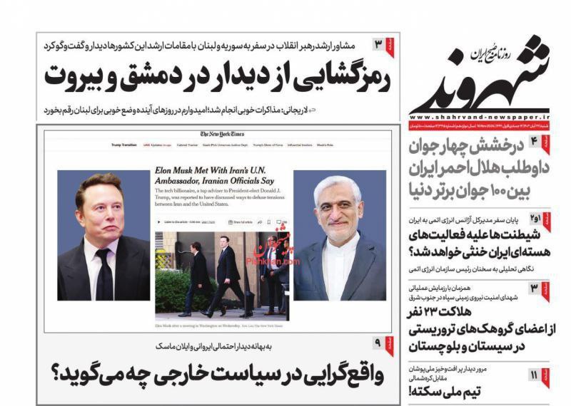 مطبوعات شنبه، ۲۷ آبان ۱۴۰۳