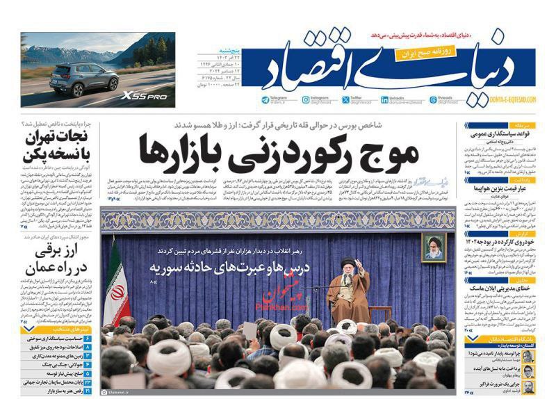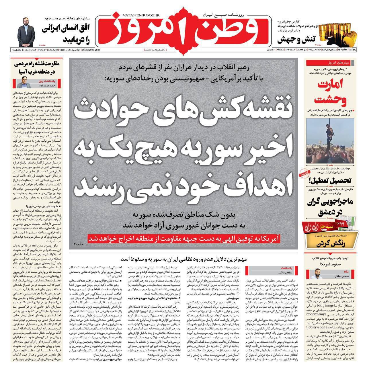 مطبوعات پنجشنبه، ۲2 آذرماه ۱۴۰۳