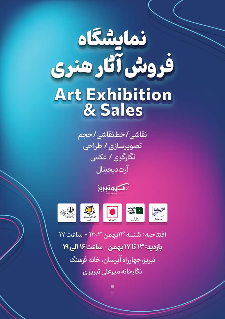 سونیوز: نمایشگاه فروش آثار هنری، روز شنبه 13 بهمن ماه، راس ساعت 17 در تبریز، خانه فرهنگ، نگارخانه میرعلی تبریزی افتتاح می شود.